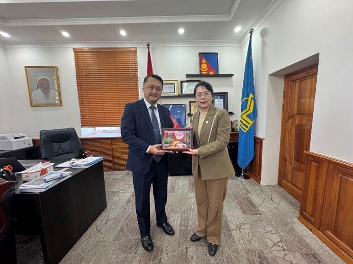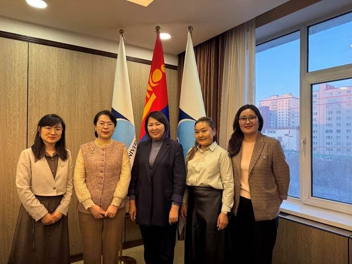 院长苏莹莹率团访问蒙古国,赴蒙古国立大学洽谈校际交流合作事宜,访问蒙古城市大学,拜会中国驻蒙古国大使馆,调研乌兰巴托中国文化中心、中兴通讯、中国电建中国水电等在蒙中资企业情况,并慰问北外在蒙古国公派学习的本科生、研究生及在蒙工作的校友。