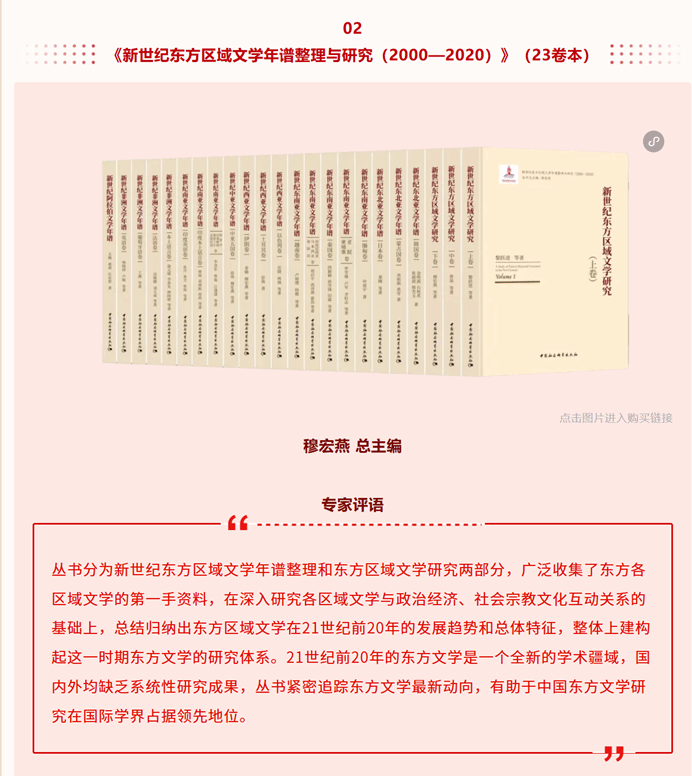 中国社会科学出版社2025年出版图书约2000种,从中评选出23种年度优秀出版成果。台湾a片 穆宏燕教授任总主编的《新世纪东方区域文学年谱整理与研究》23卷丛书荣登中国社会科学出版社2025年度优秀出版成果榜单。