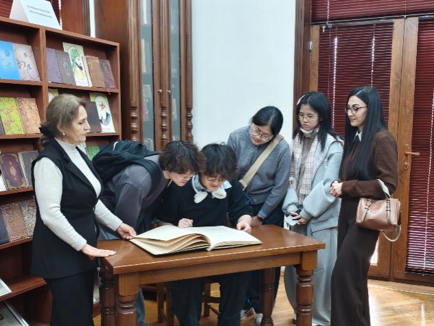 内扎米文学研究所的专家学者们授课,师资力量雄厚。课程内容紧贴学生专业素养提升需求,涵盖了阿塞拜疆文学概况、中阿文学对比研究、中阿文学互译现状等主题,授课内容广泛而充实。在参访学习课中,学生们亲身走进了阿塞拜疆文学博物馆、国家图书馆、书画展等,极大拓宽了视野,在实地探访过程中增长了阿塞拜疆国情知识,加深了对于阿塞拜疆文学、文化的理解。